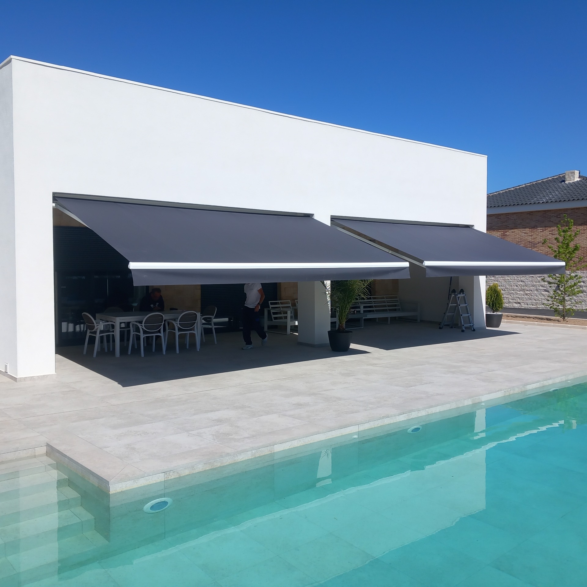 El toldo cofre o toldo portada cofre destaca por su diseño elegante y su sistema de protección total, que resguarda la lona y los brazos dentro de una carcasa de aluminio. En ToldosMadrid.io somos especialistas en fabricar e instalar toldos cofre a medida, perfectos para mantener la estética y prolongar la vida útil del toldo. Ideal para terrazas, áticos o fachadas, ofrece una solución duradera, segura y con un acabado impecable.